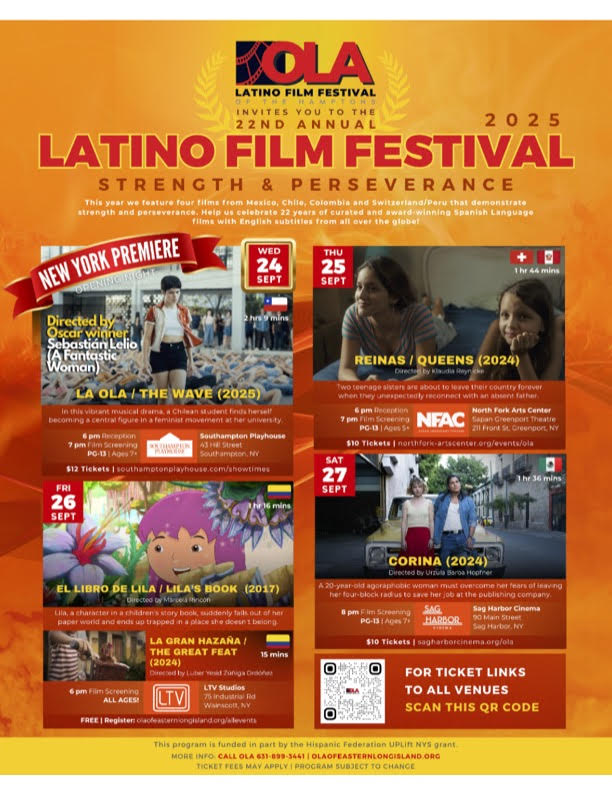 La Organización Latinoamericana (OLA) se complace en invitarle al 22° Festival Anual de Cine Latino de los Hamptons.